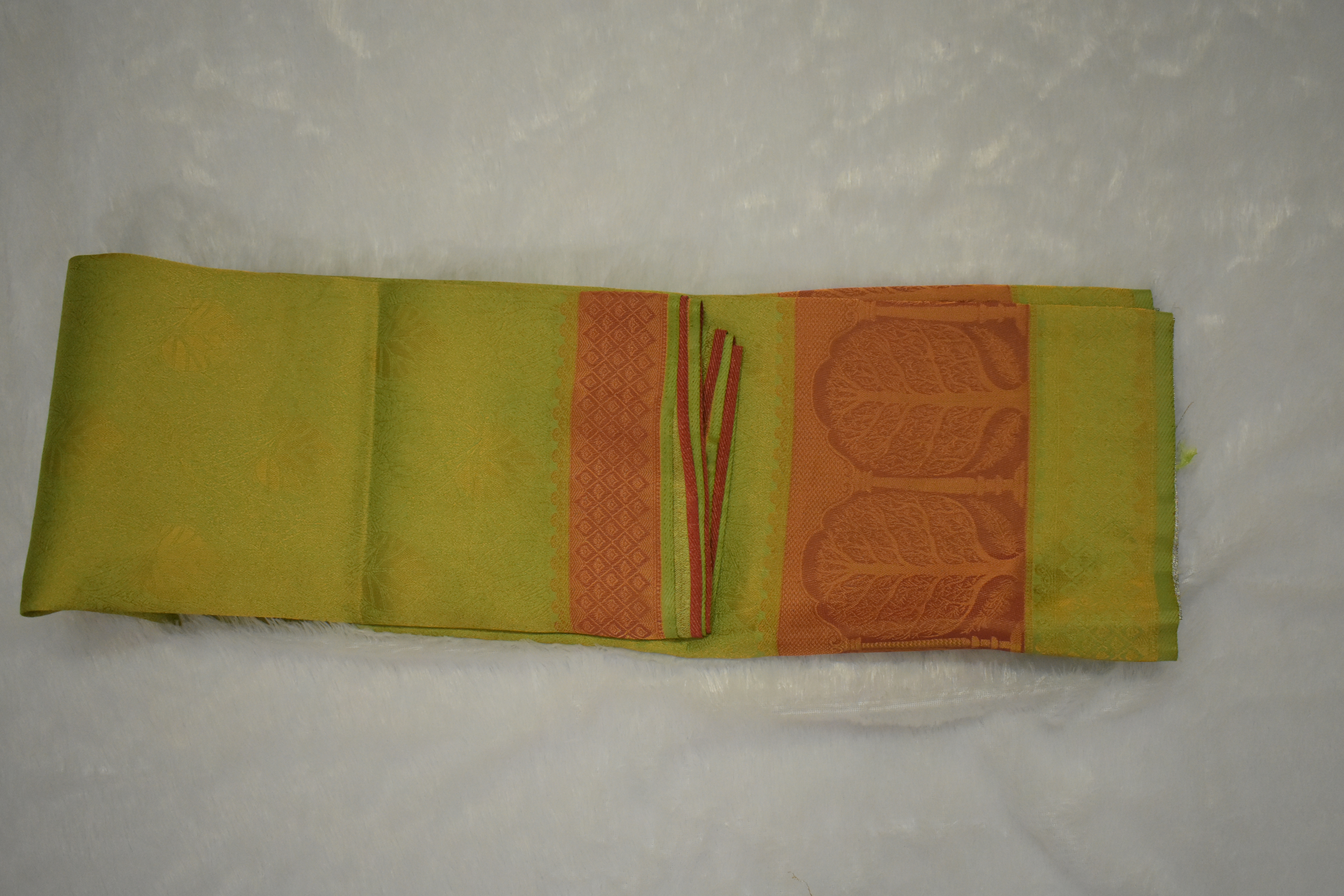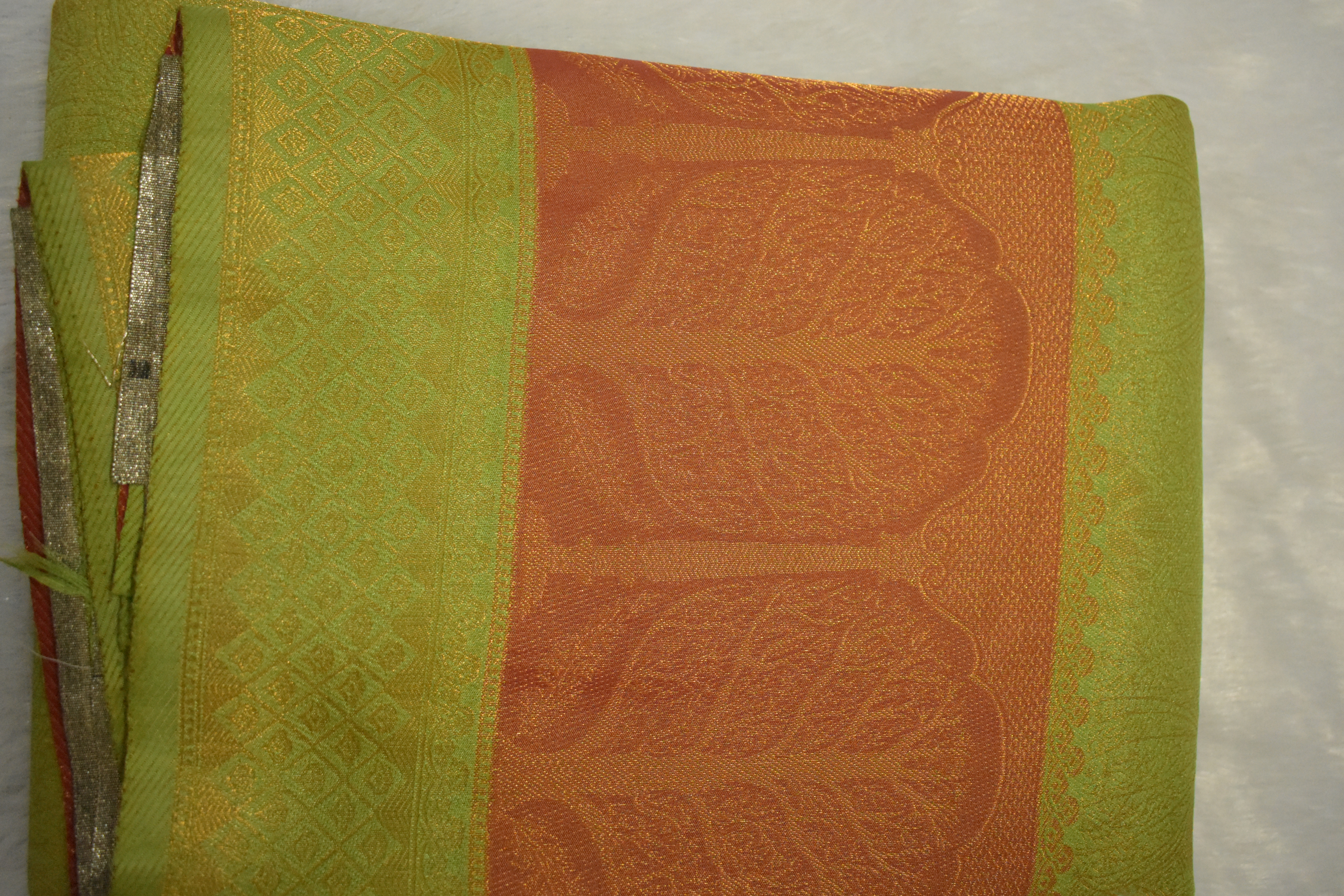 Style this green and orange silk saree with gold jewelry, temple earrings, or a statement necklace to create a regal appearance. Pair it with ethnic sandals or heels and a stylish clutch for a complete festive look. This saree also makes a thoughtful gift for loved ones during Diwali, weddings, or milestone celebrations.