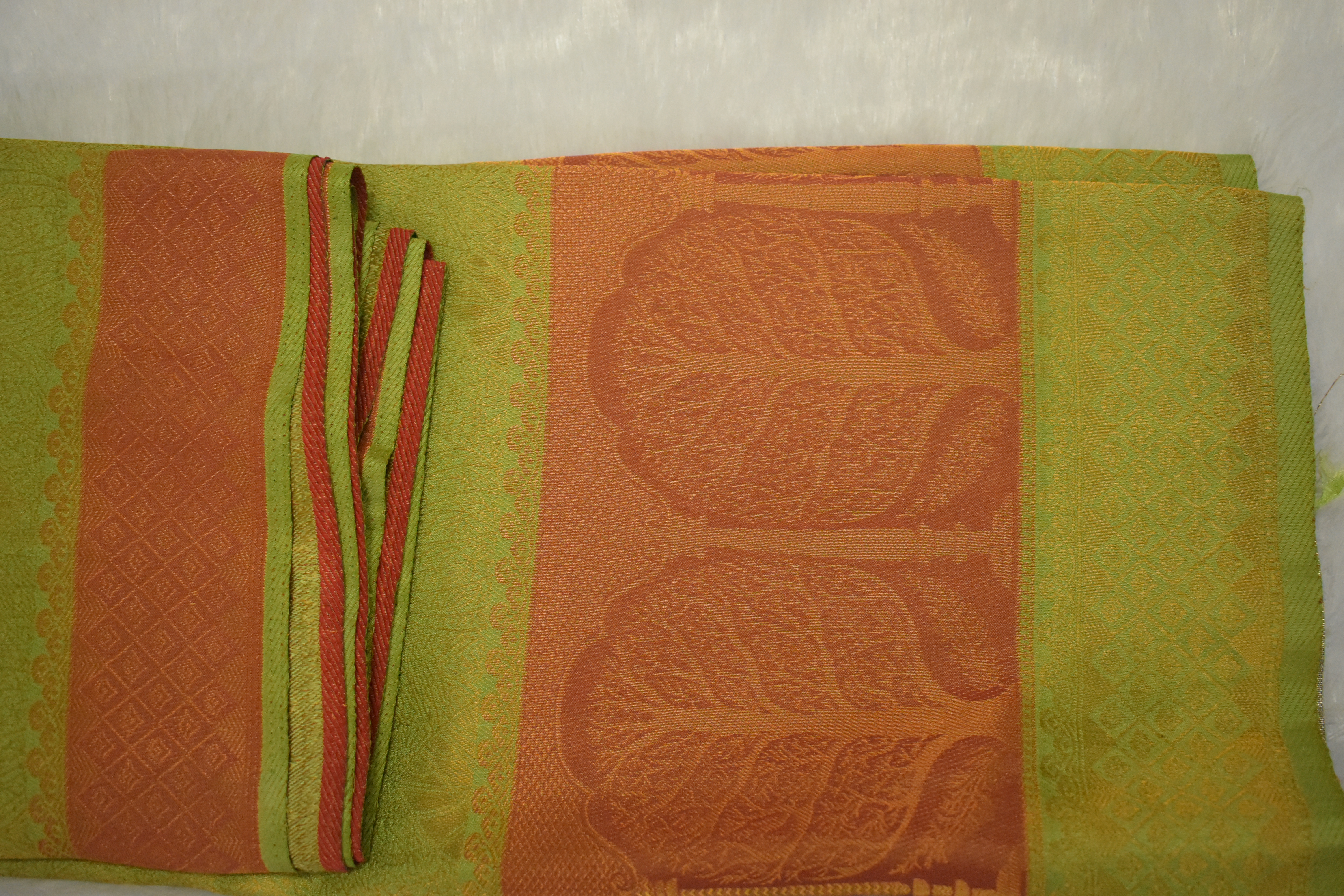 Kanchipuram Silk Saree Contrast Border Zari Woven Partywear Green Orange