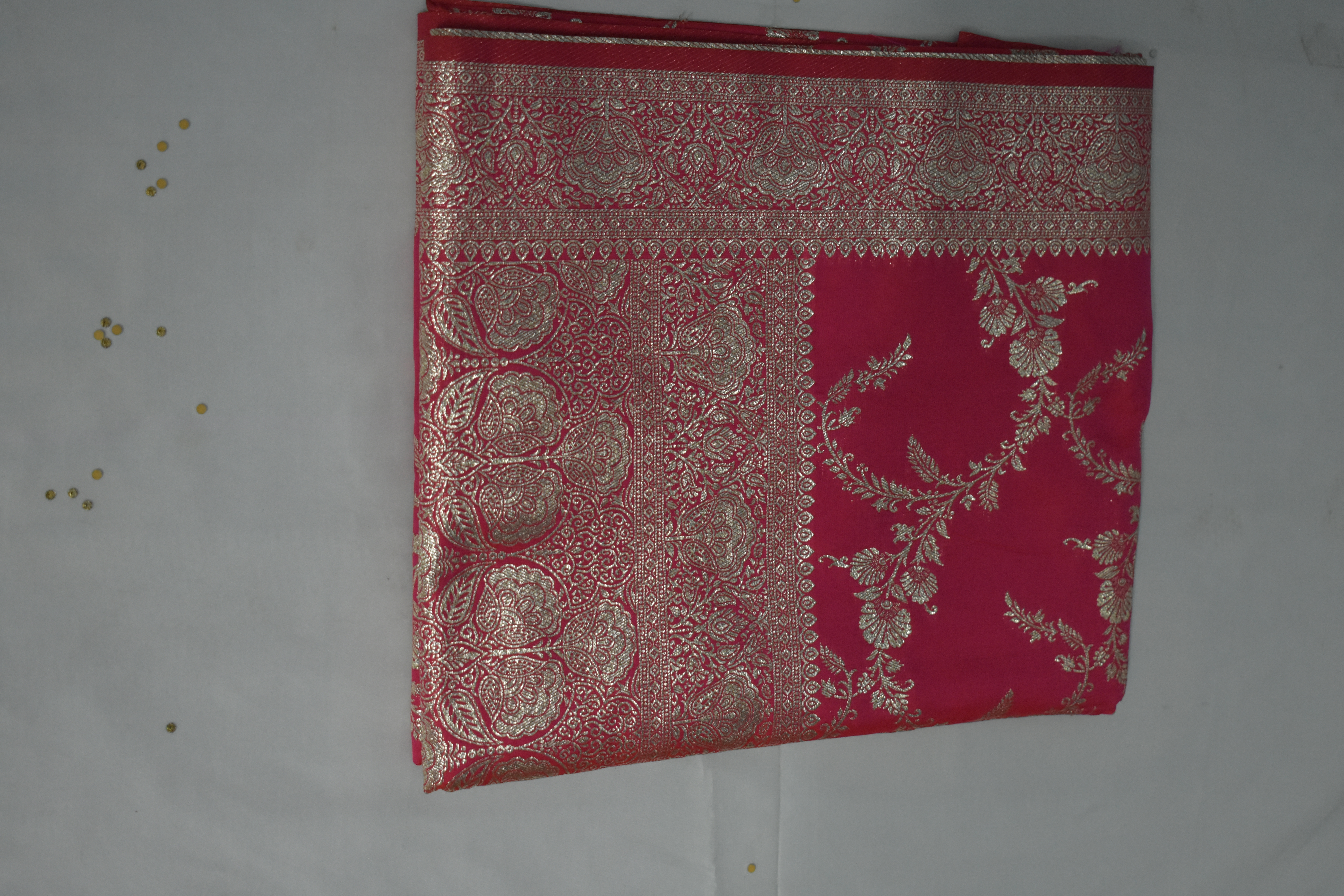 The glimmering zari work pairs perfectly with the lustrous silk base,