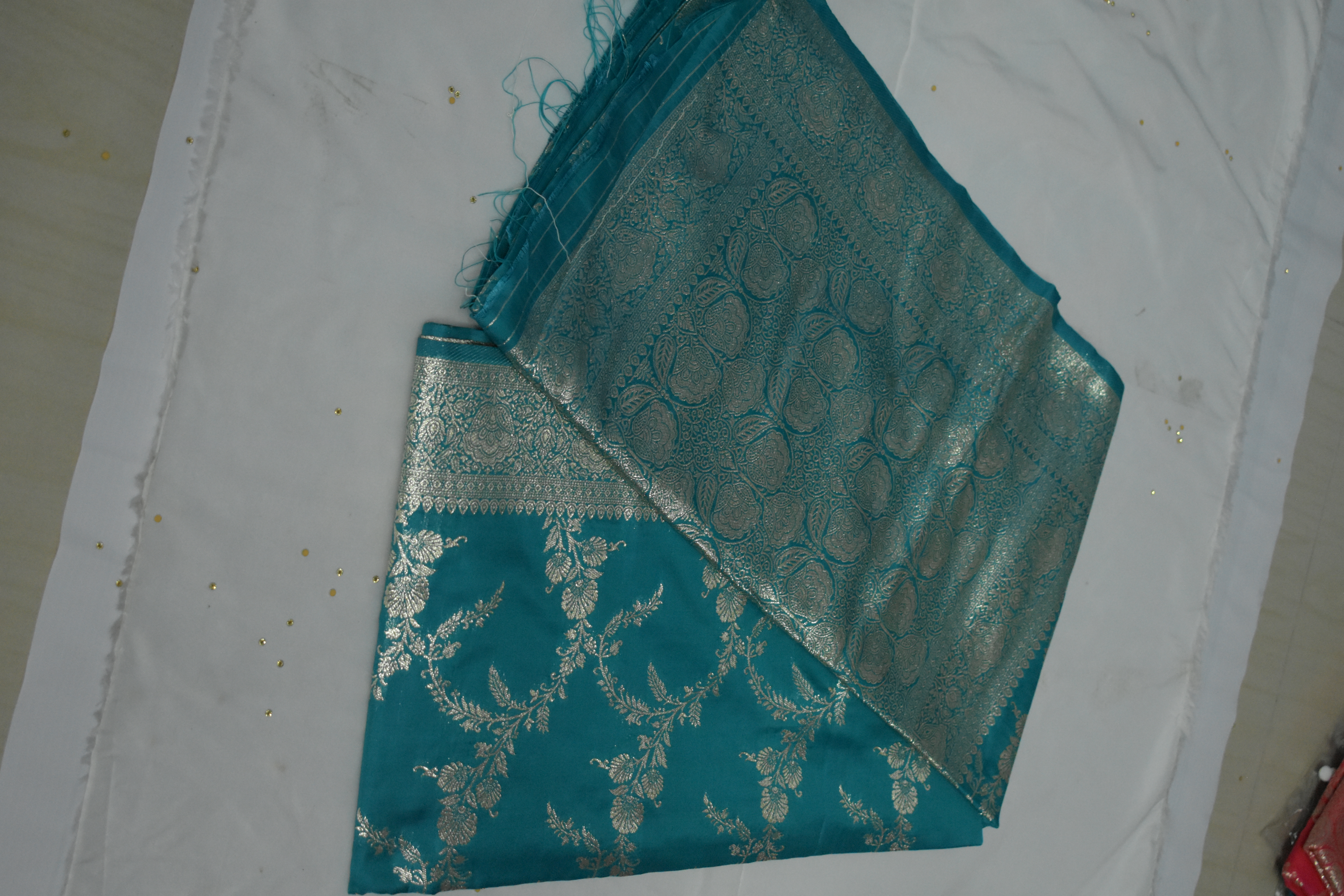 The glimmering zari work pairs perfectly with the lustrous silk base,