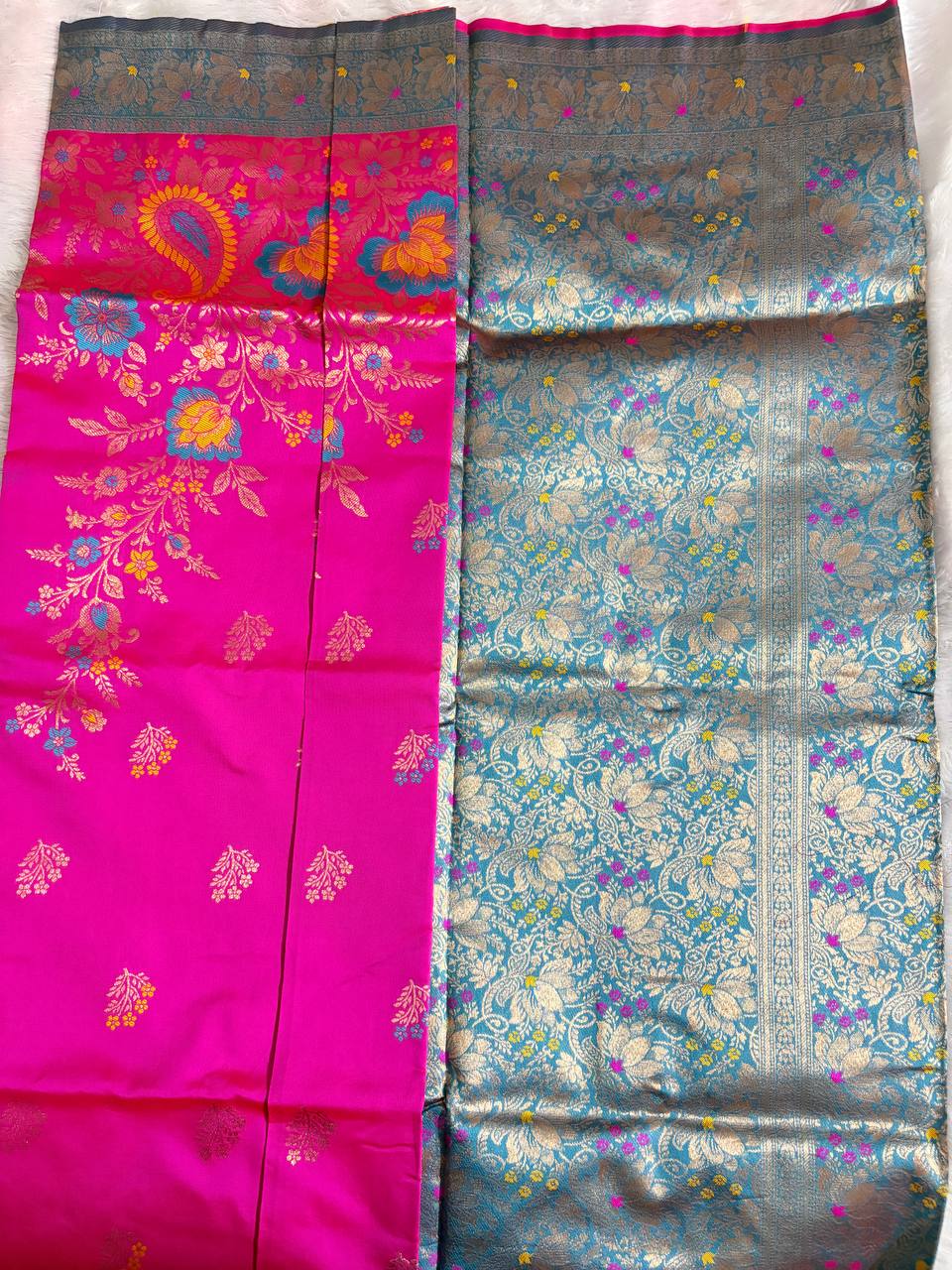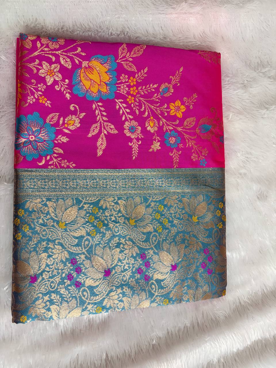 Silk Saree Floral Zari Woven Banarasi for Festive and Wedding Pink Blue