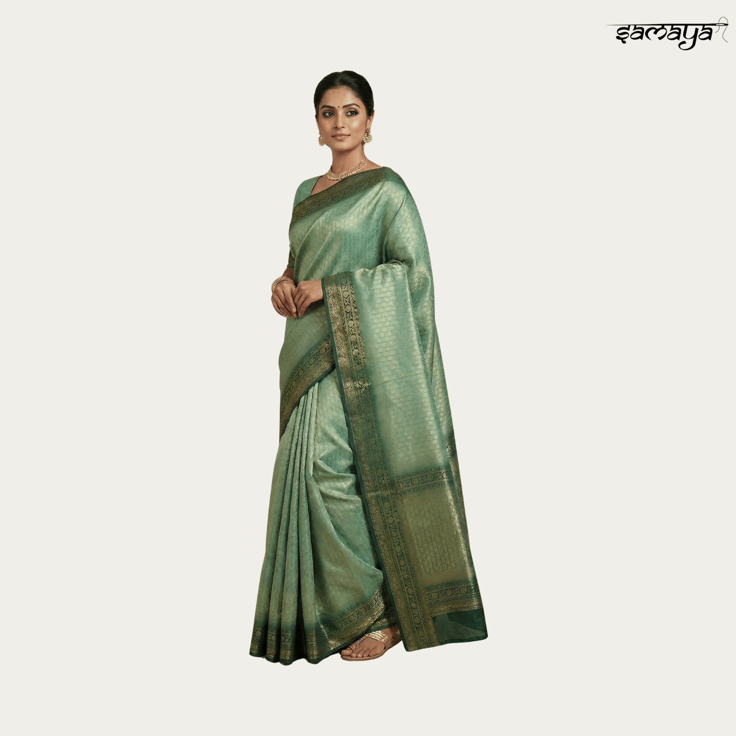 Sea Green Soft Silk Saree with Self Weaving for Festive