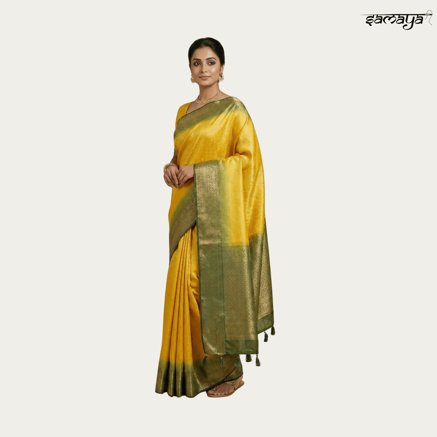 Mustard Yellow Soft Silk Saree with Olive Border for Haldi