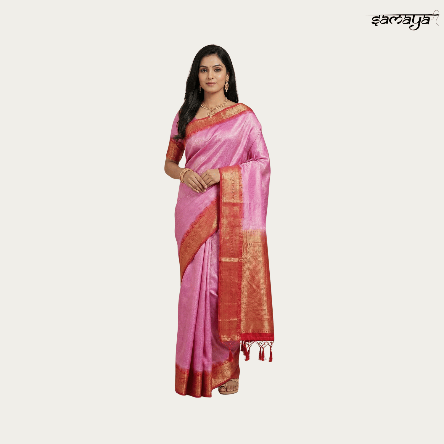 Mauve Pink Soft Silk Saree with Contrast Red Border Wedding