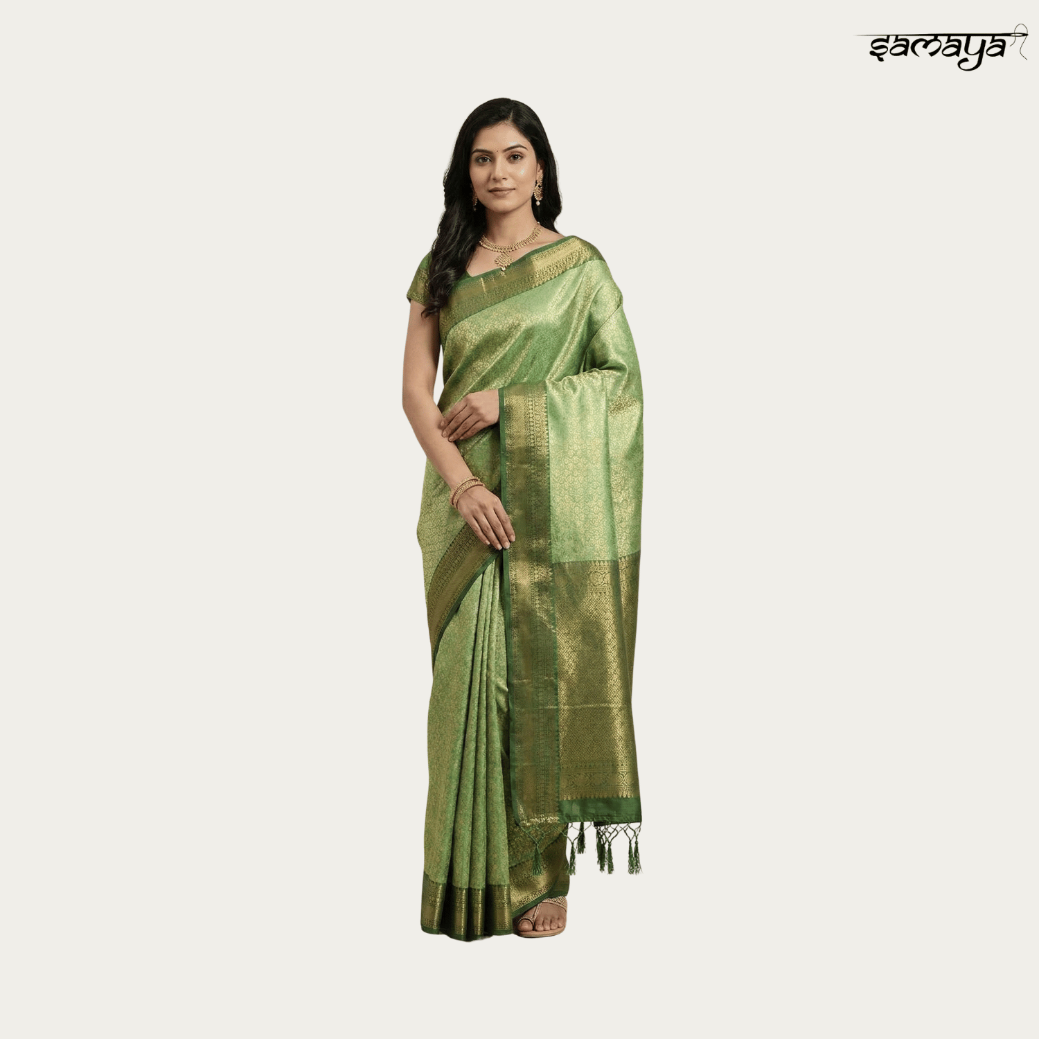 Olive Green Soft Silk Saree with Self Weaving for Festive