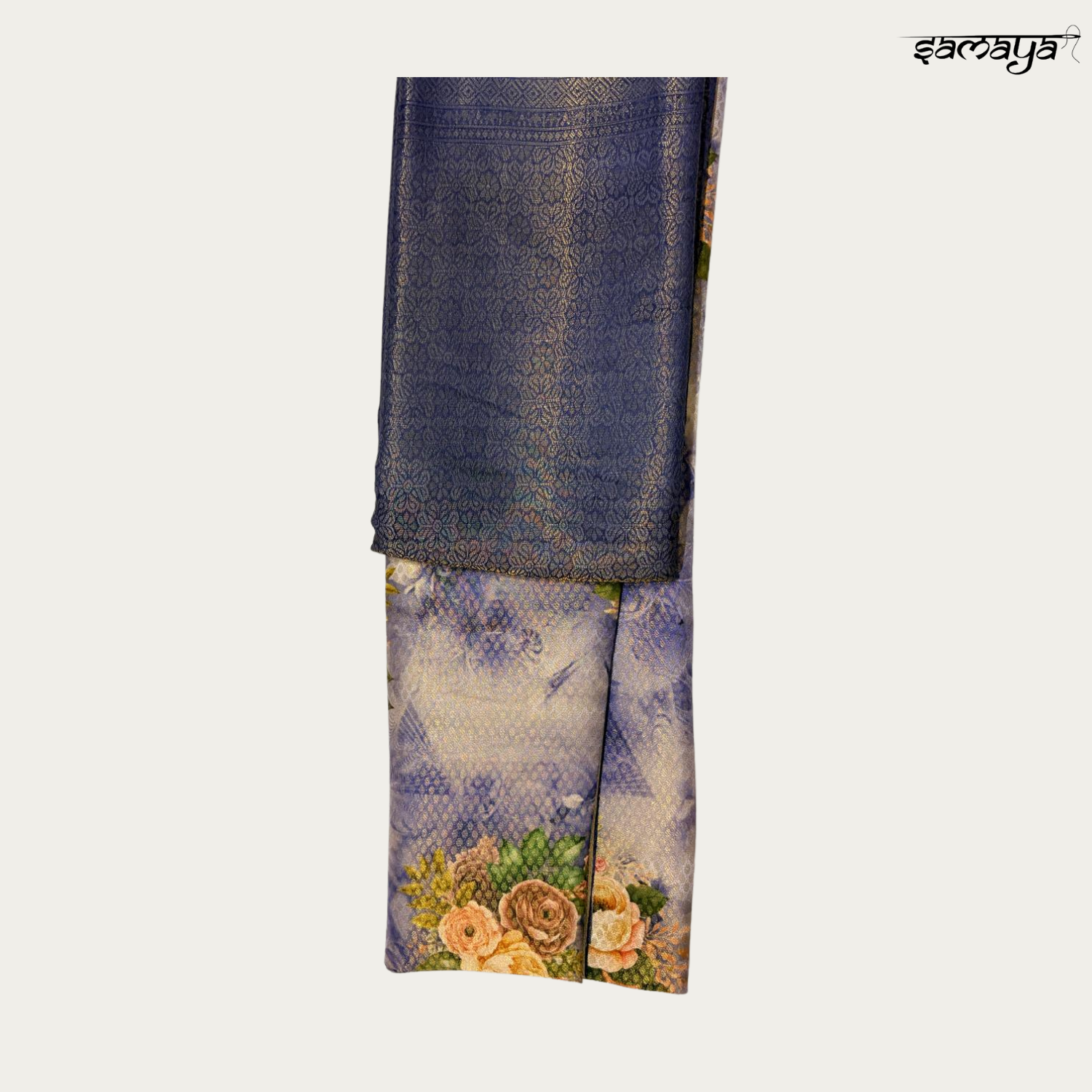 | Work Type | Digital Floral Print and Gold Zari Weaving |