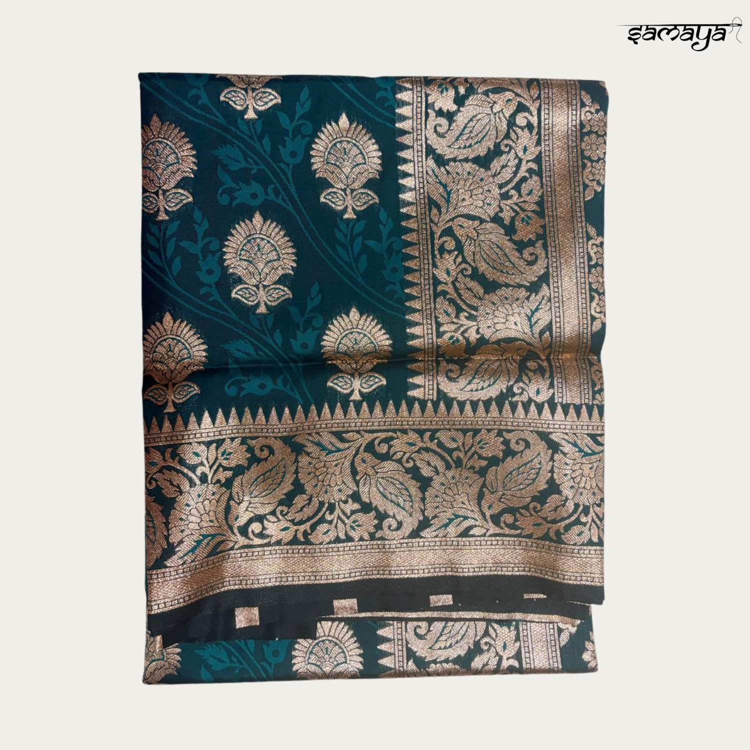Bottle Green Banarasi Silk Saree Gold Zari Festive Wedding
