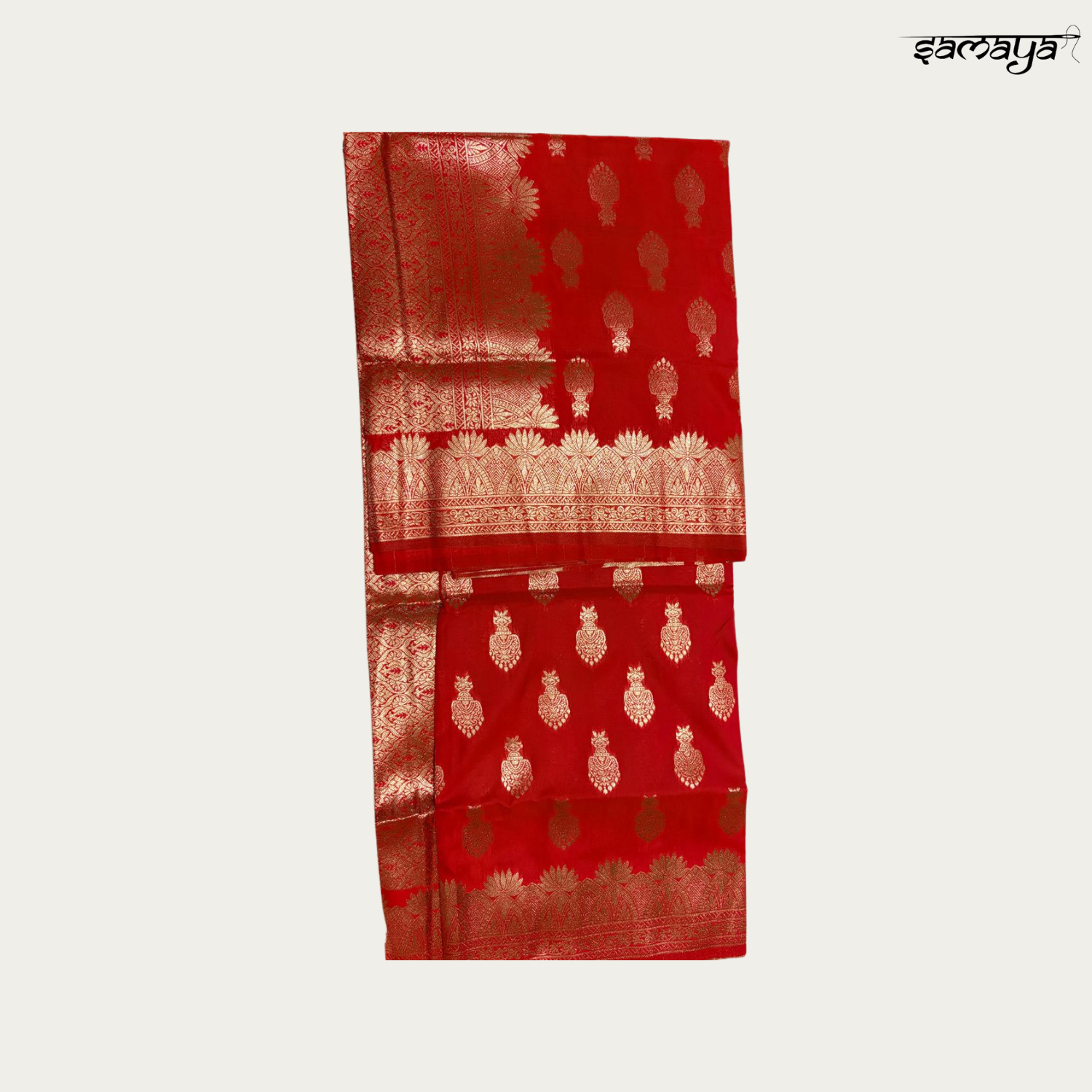 Red Banarasi Silk Saree with Gold Zari Work for Wedding