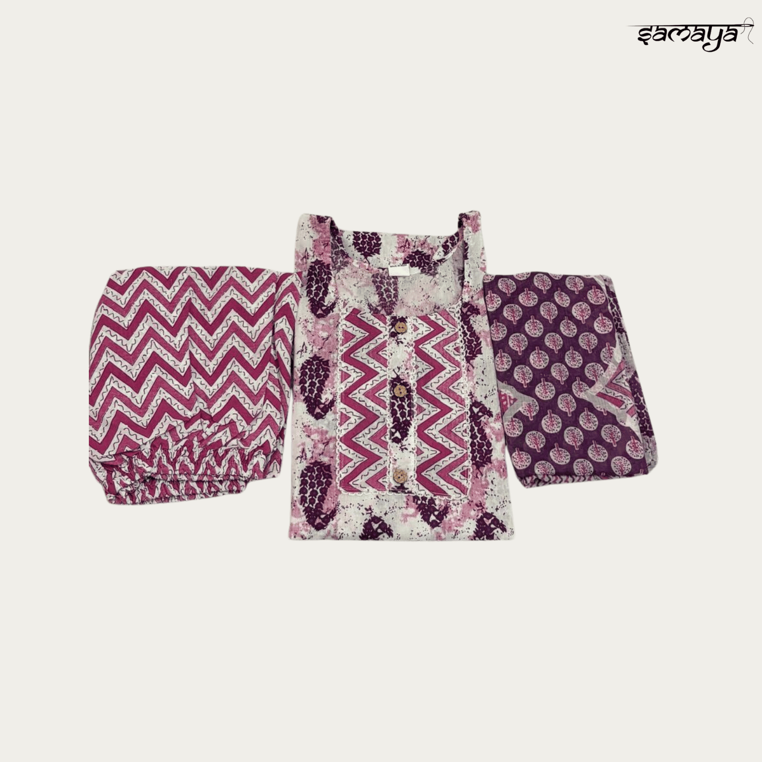 Purple Printed Cotton Kurti Set with Dupatta Festive Casual Wear