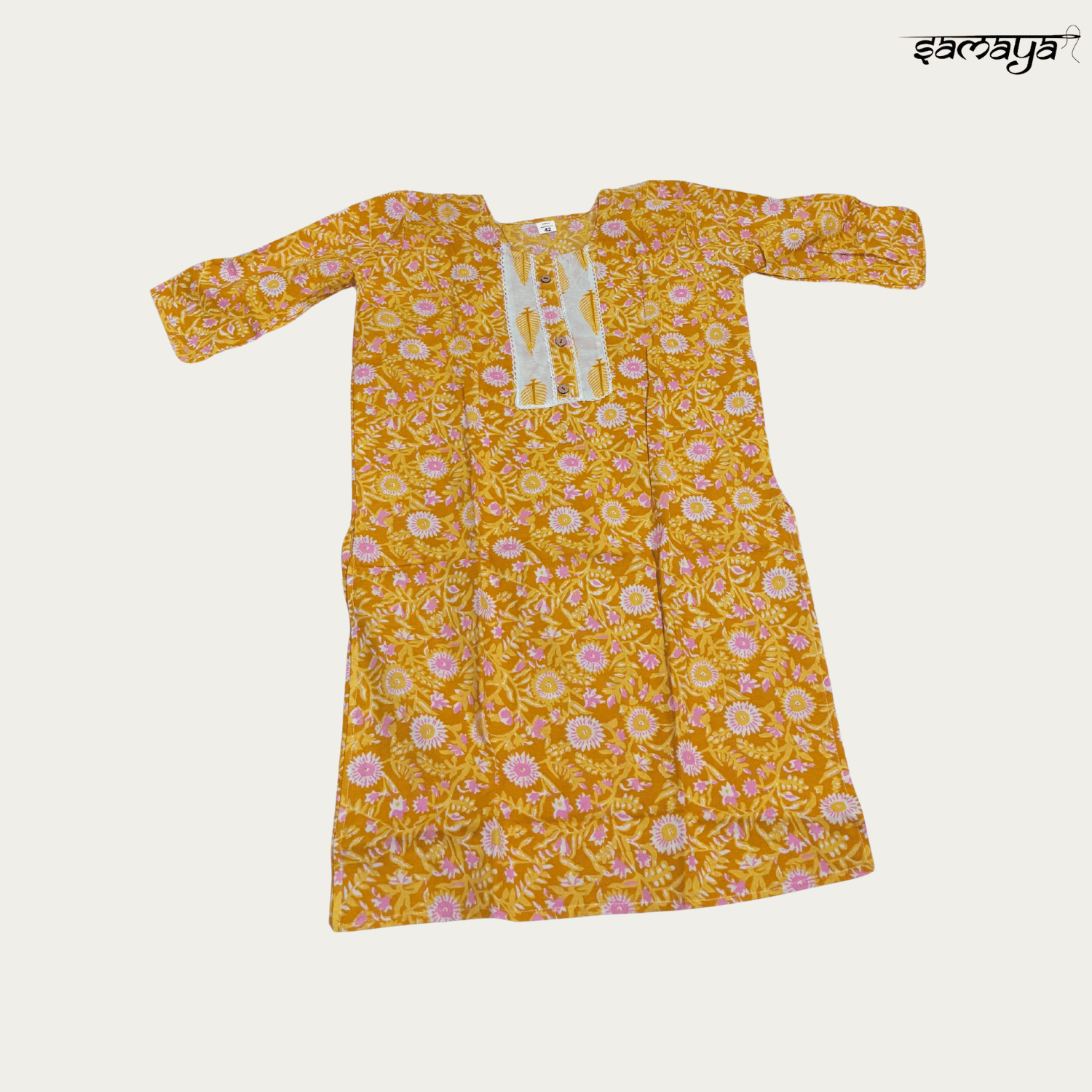 Mustard Floral Printed Cotton Kurti Set Festive Daily Wear