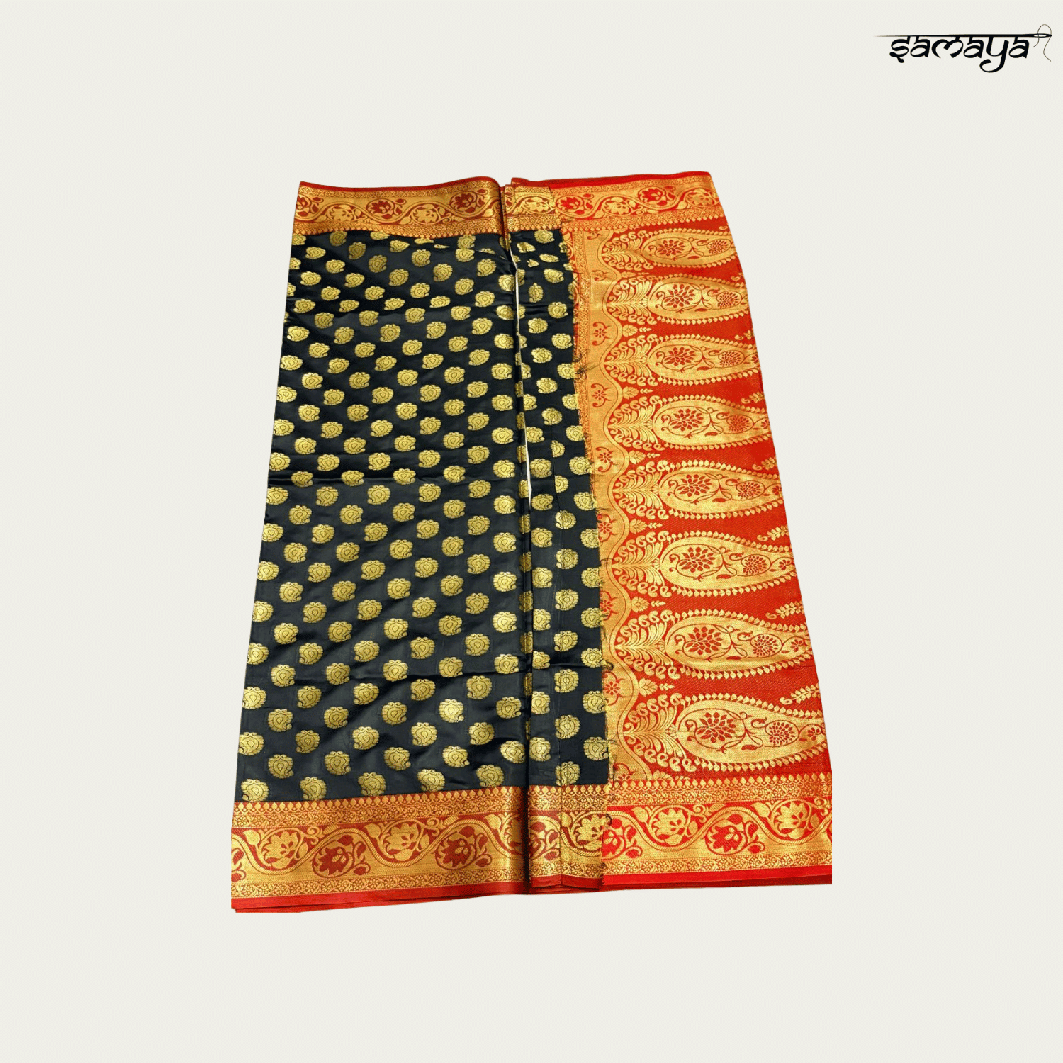 | Work Type | Gold Zari Paisley Butta & Floral Border |
