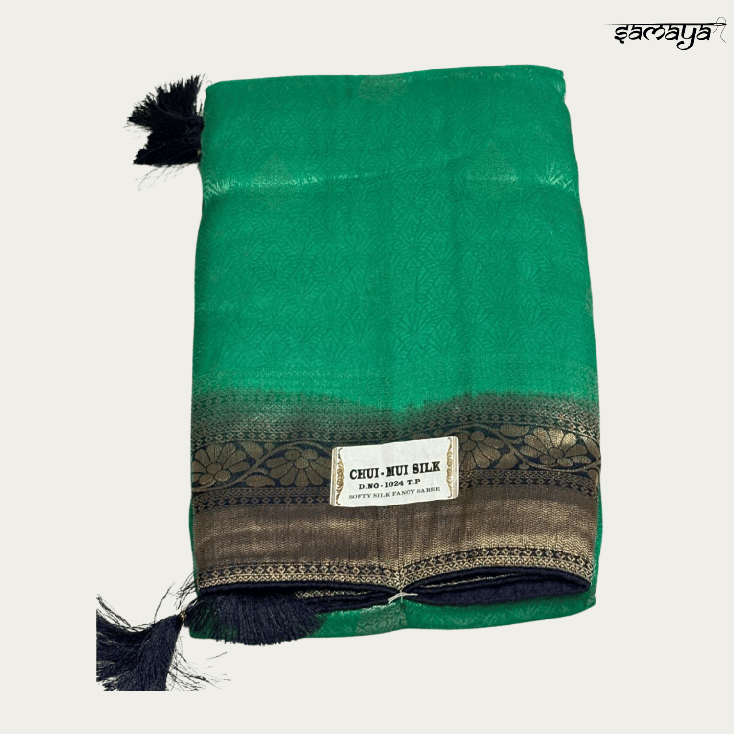 Emerald Green Soft Silk Saree with Navy Border for Festive