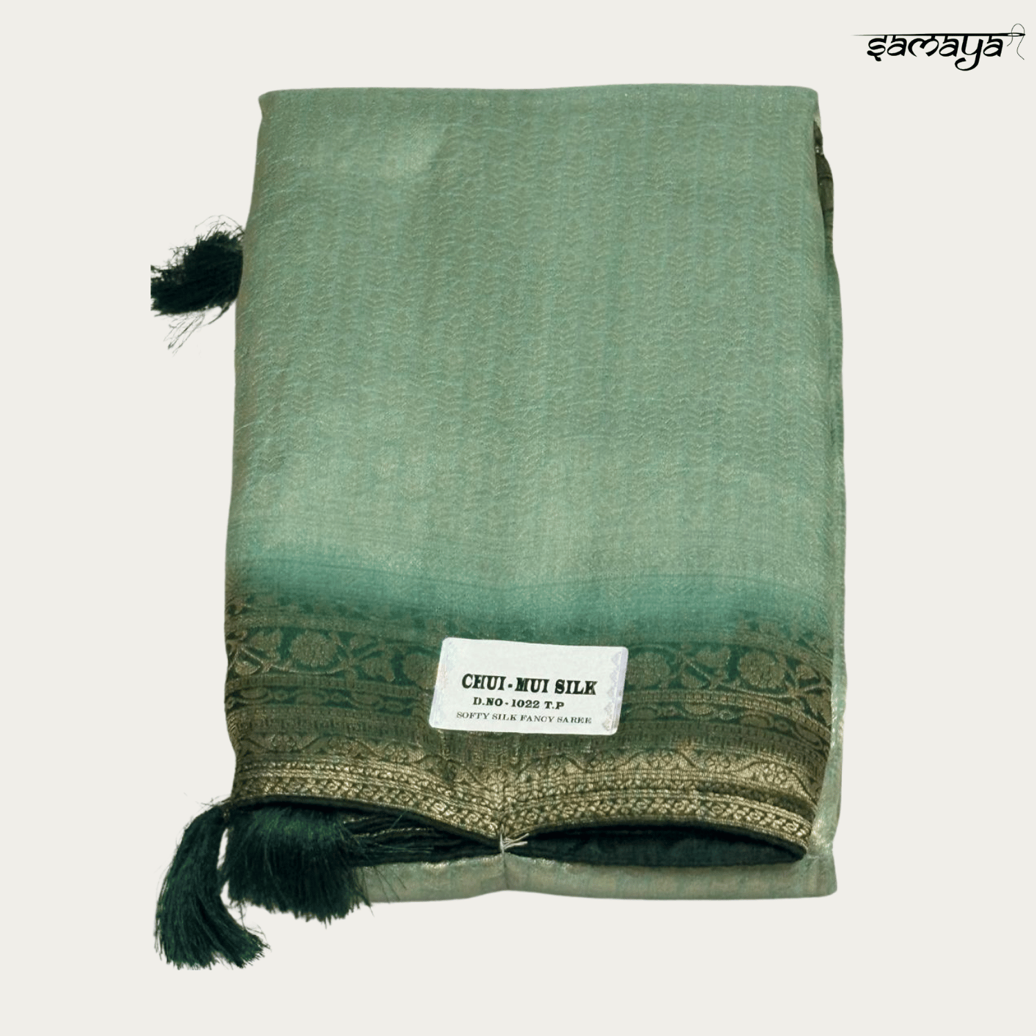 Pastel Green Soft Silk Saree with Dark Green Border for Party