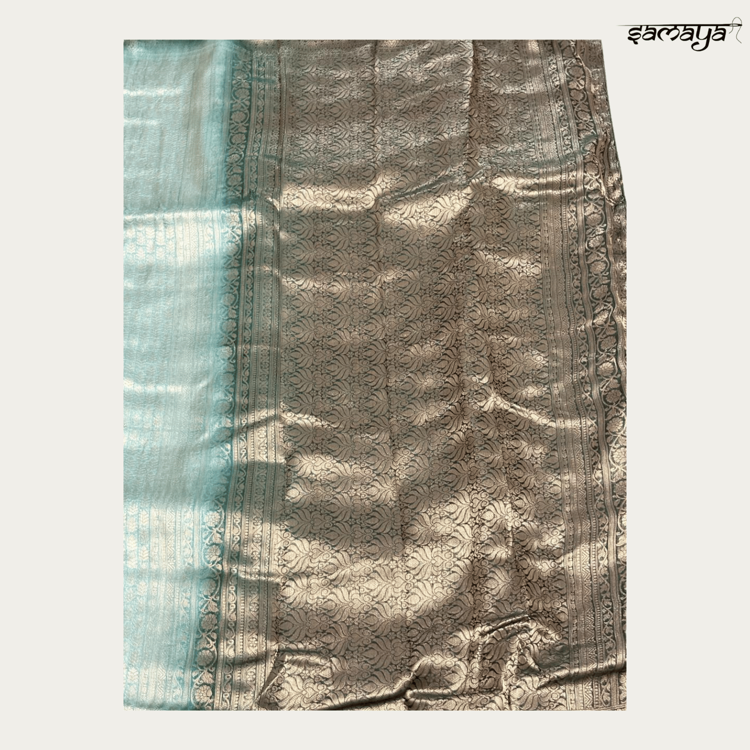 Powder Blue Banarasi Katan Silk Saree with Gold Zari Floral Jaal