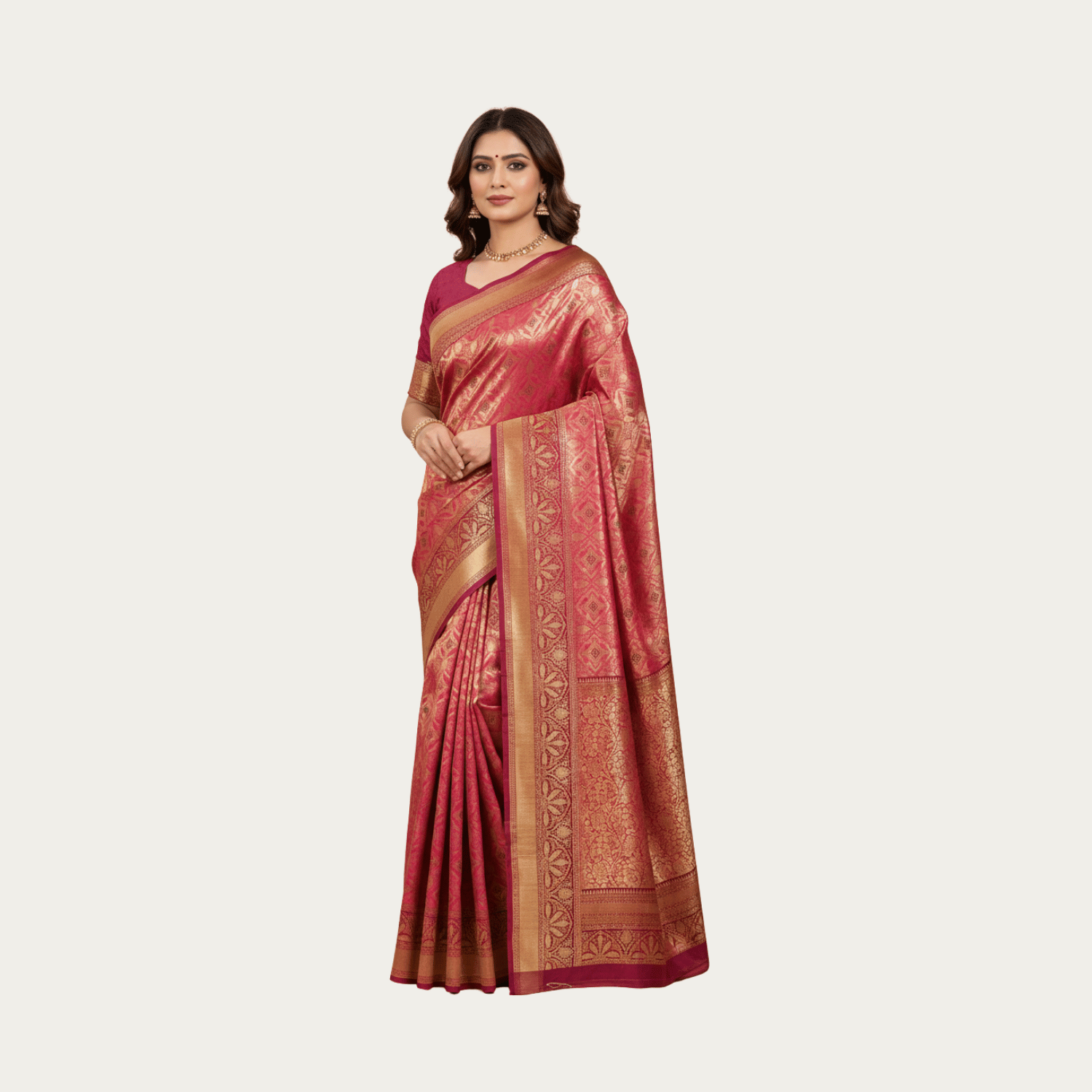 Rani Pink Banarasi Silk Saree Gold Zari Weaving Festive Wedding