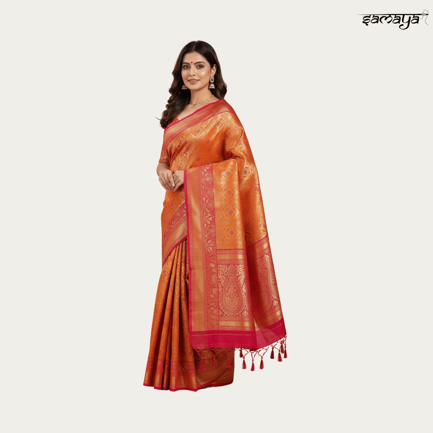 This soft silk saree falls gracefully, forming neat and sharp pleats that stay in place for hours. Its fluid nature allows for easy movement, making it an ideal choice for women on the go.