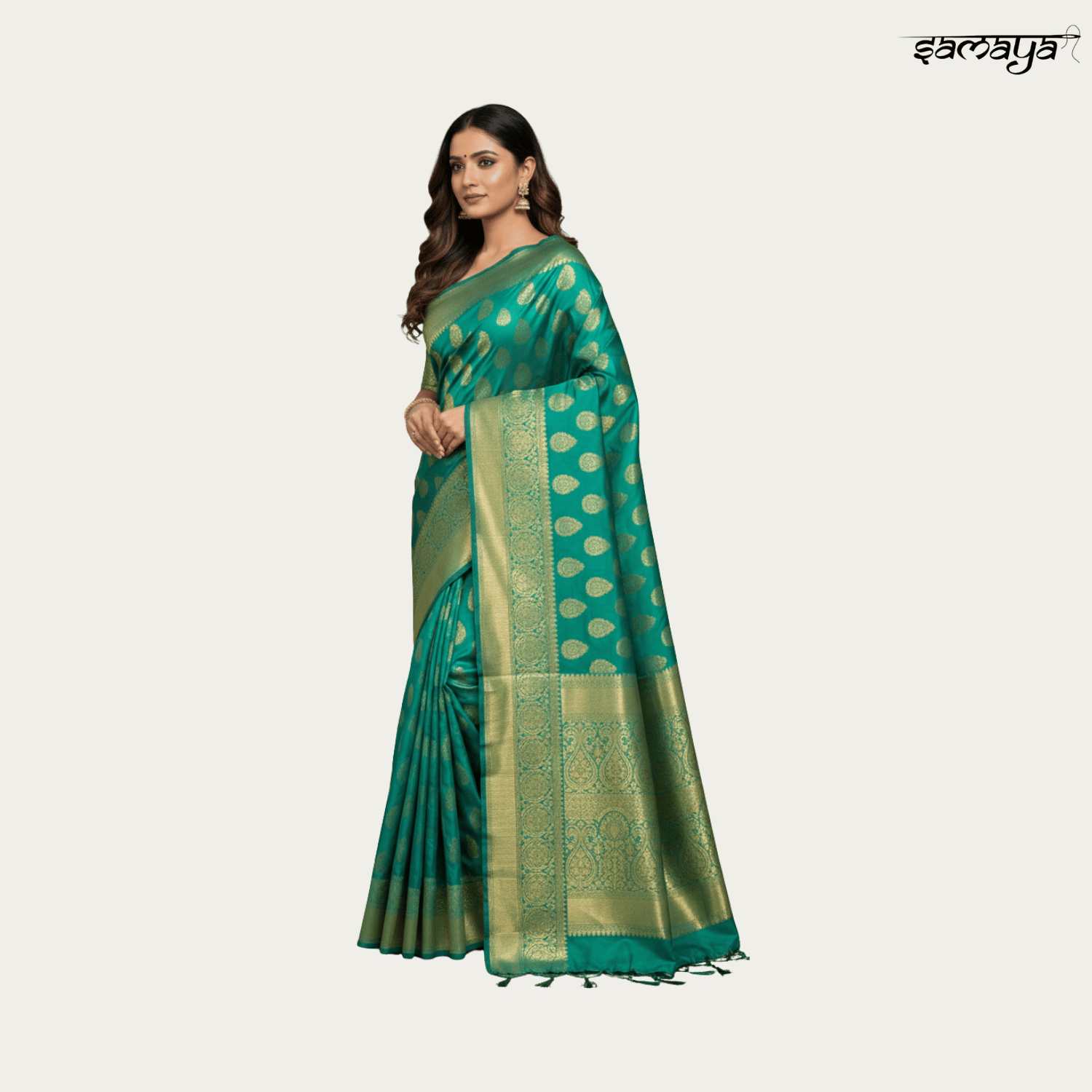 Teal Green Soft Silk Zari Butta Saree for Wedding & Party