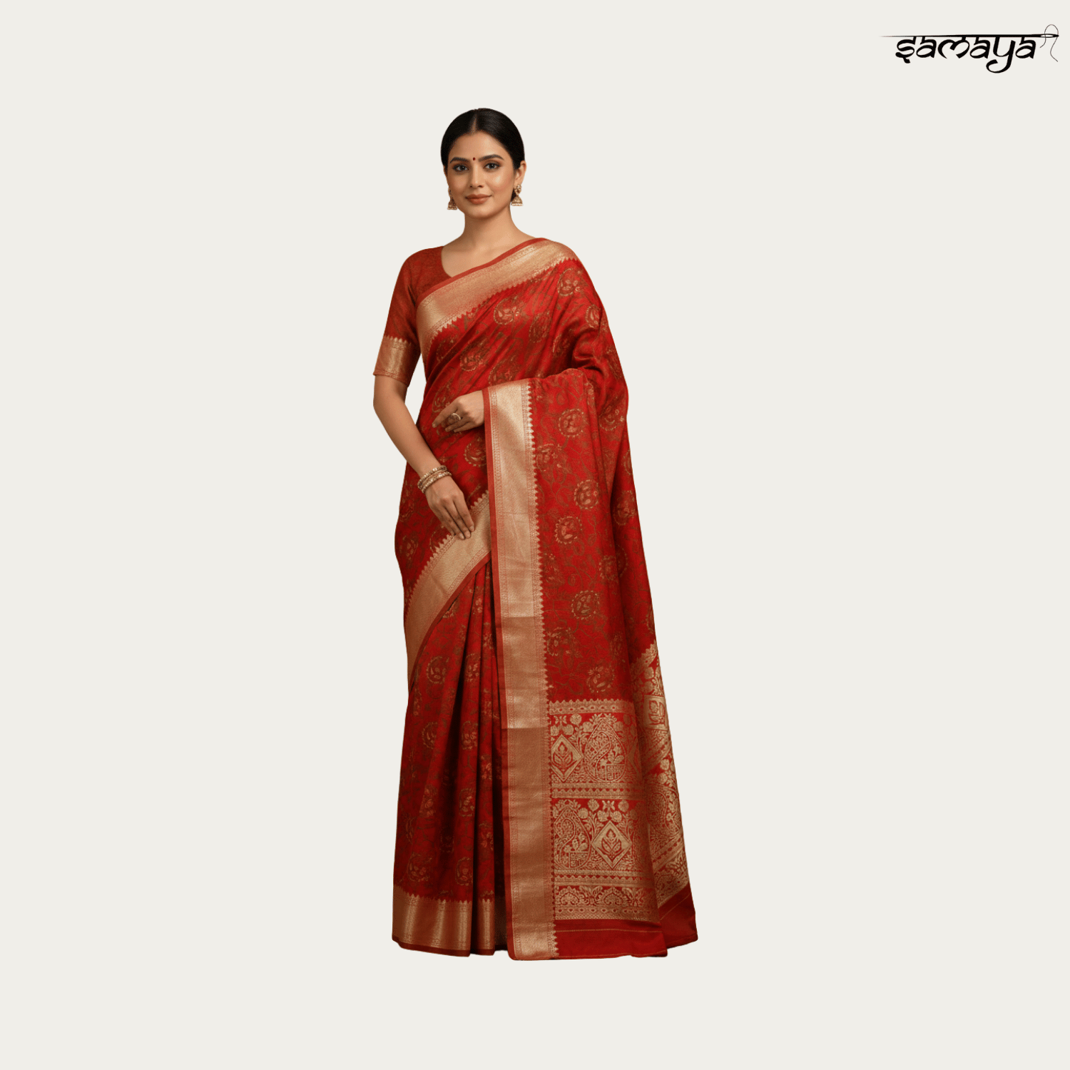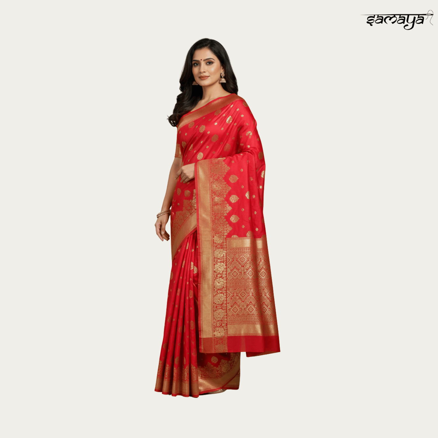 Festive Red Banarasi Silk Saree with Gold Zari for Wedding