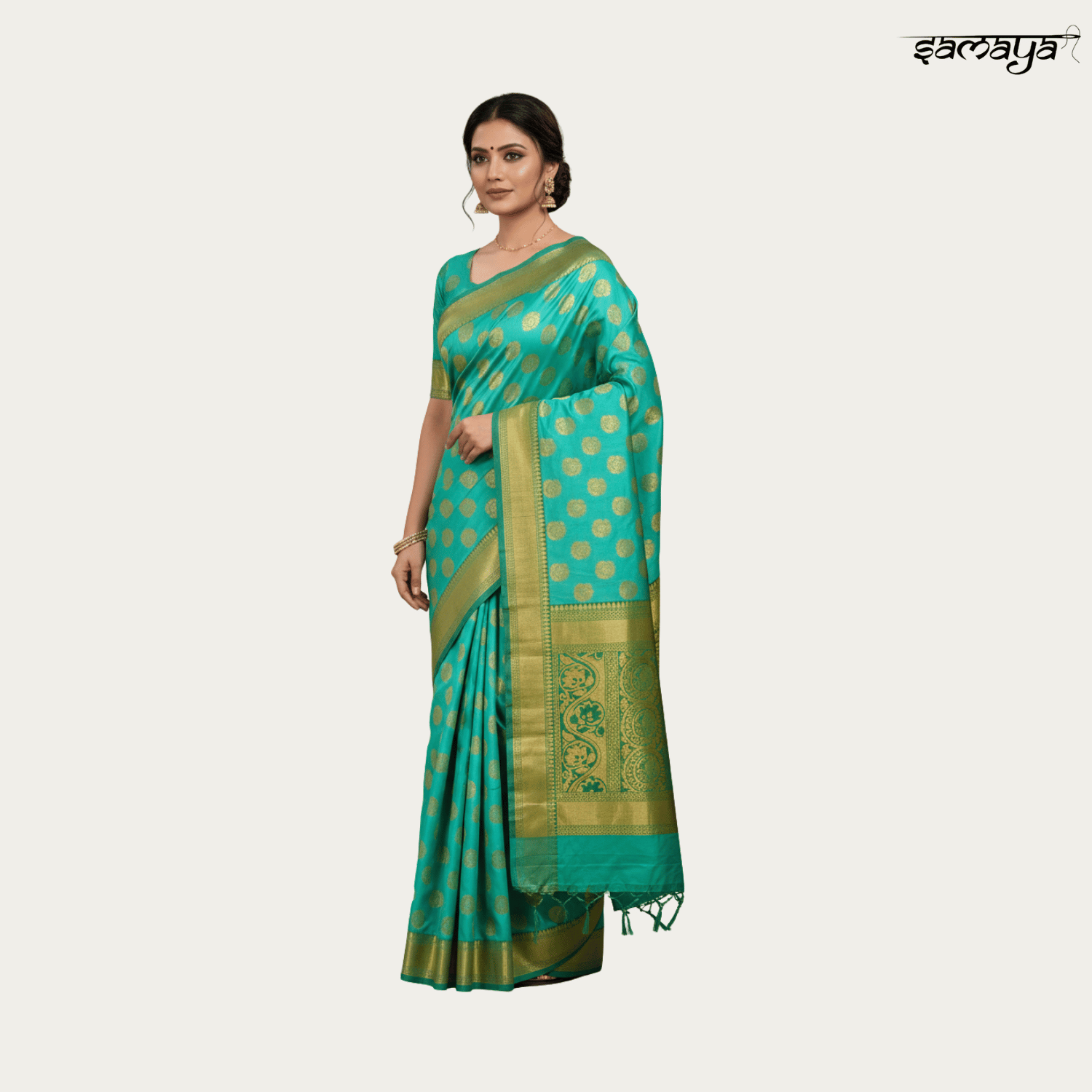 Turquoise Green Soft Silk Zari Border Saree for Weddings