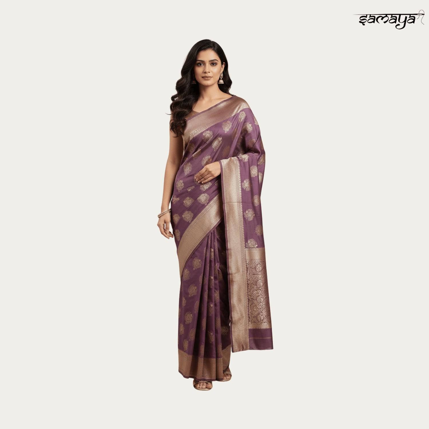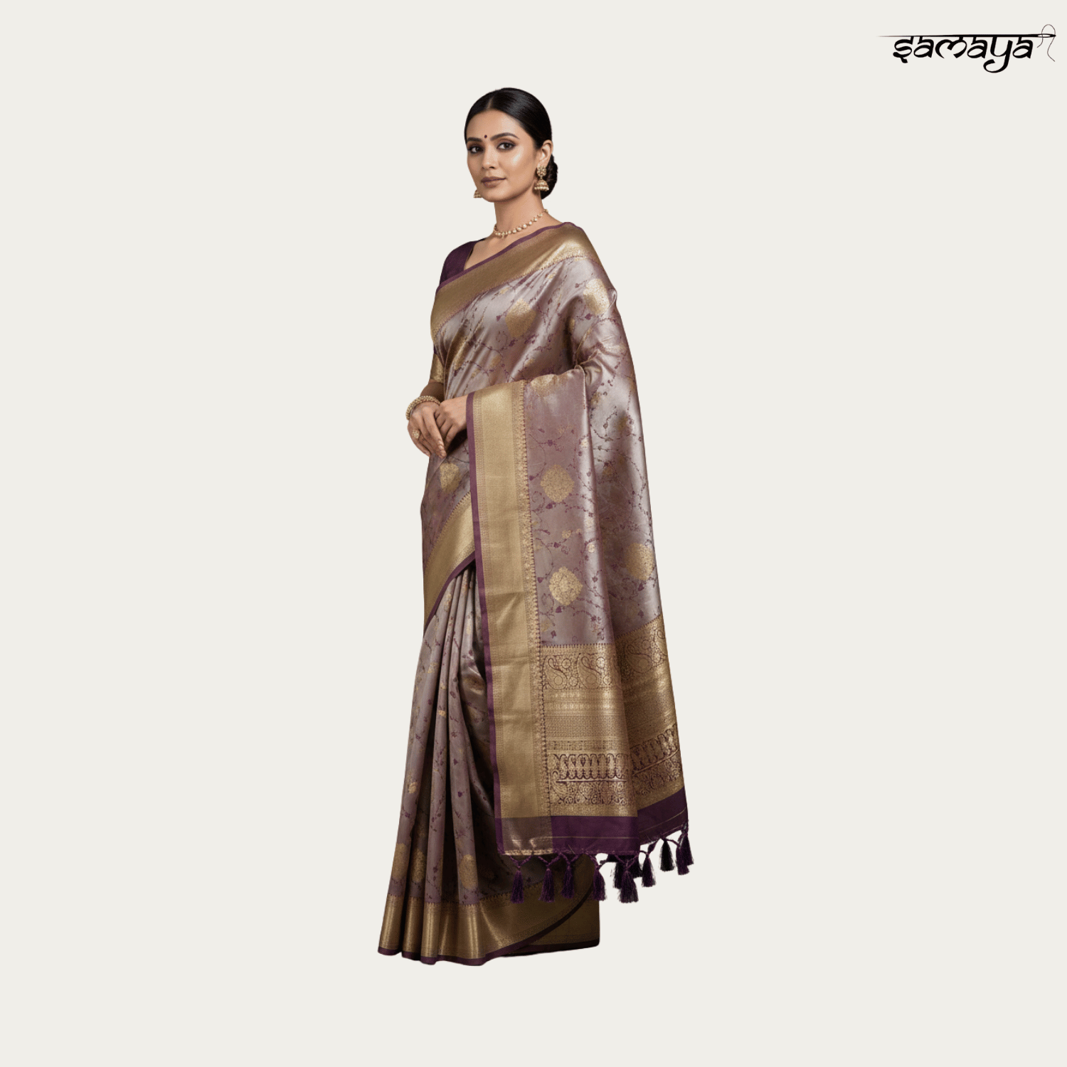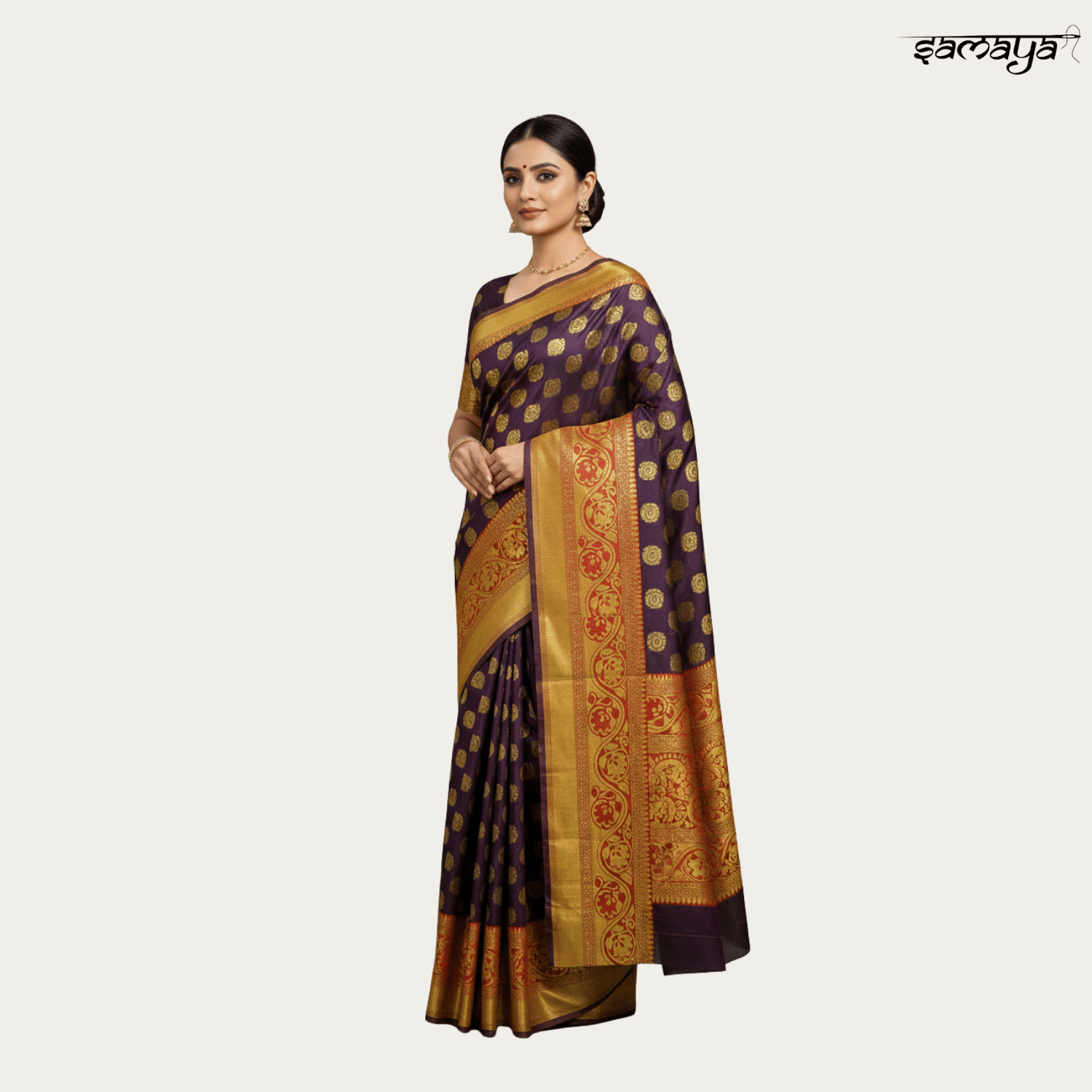 Regal Purple Banarasi Silk Saree Gold Zari Weaving Wedding Festive