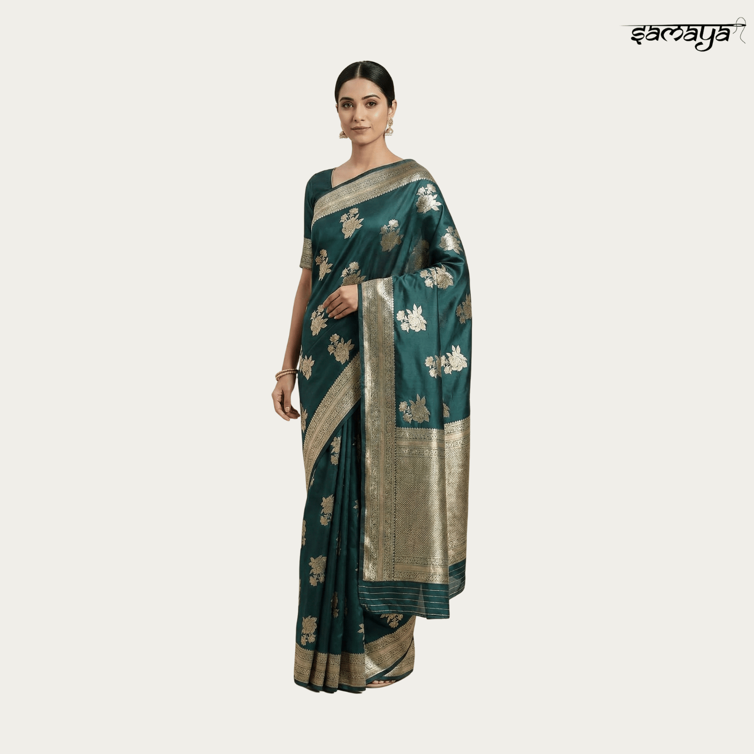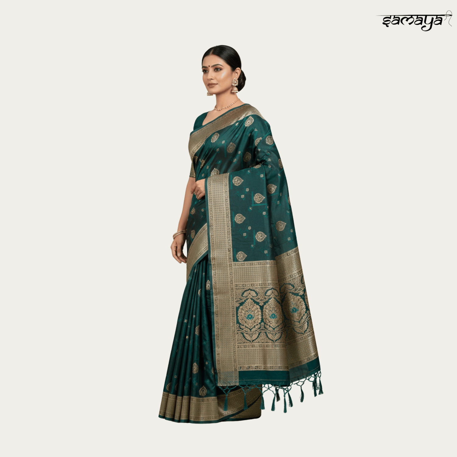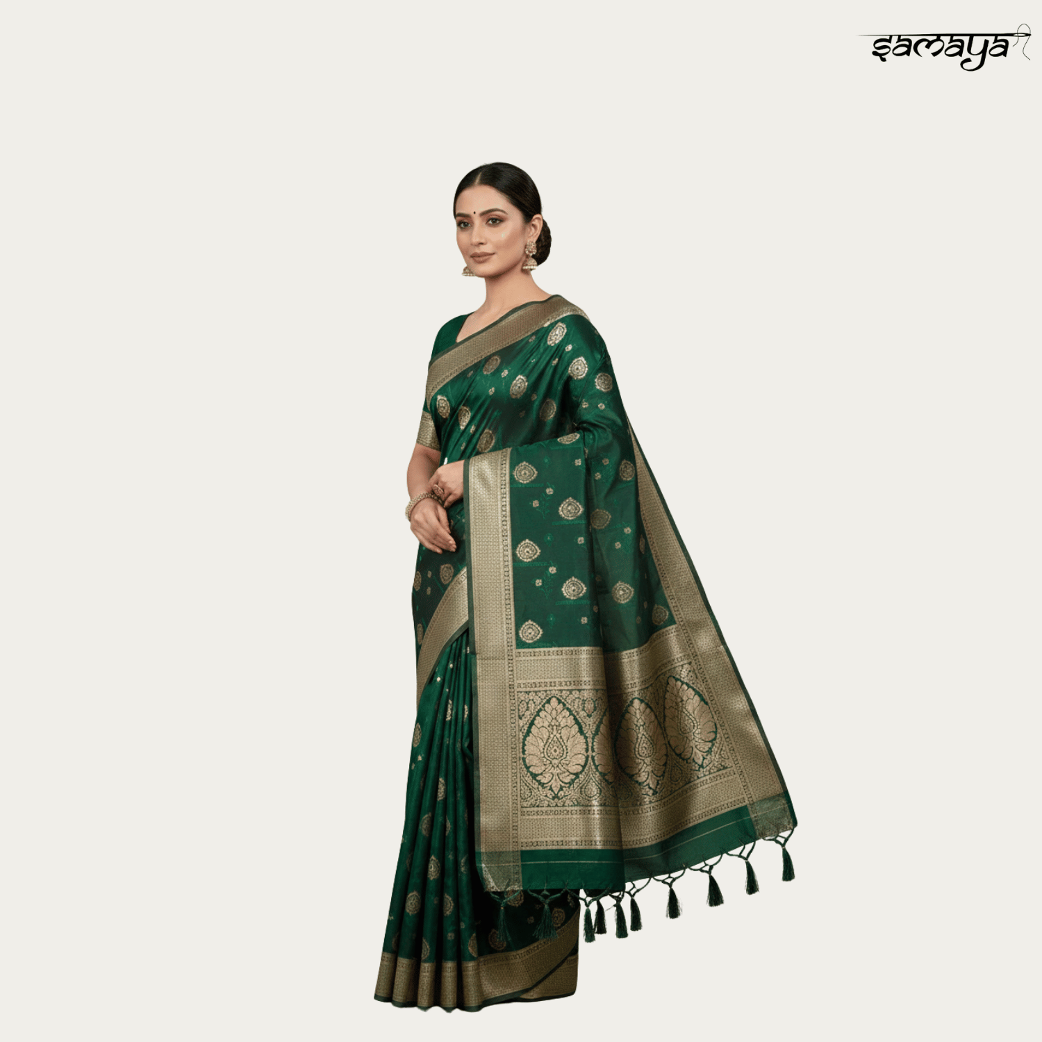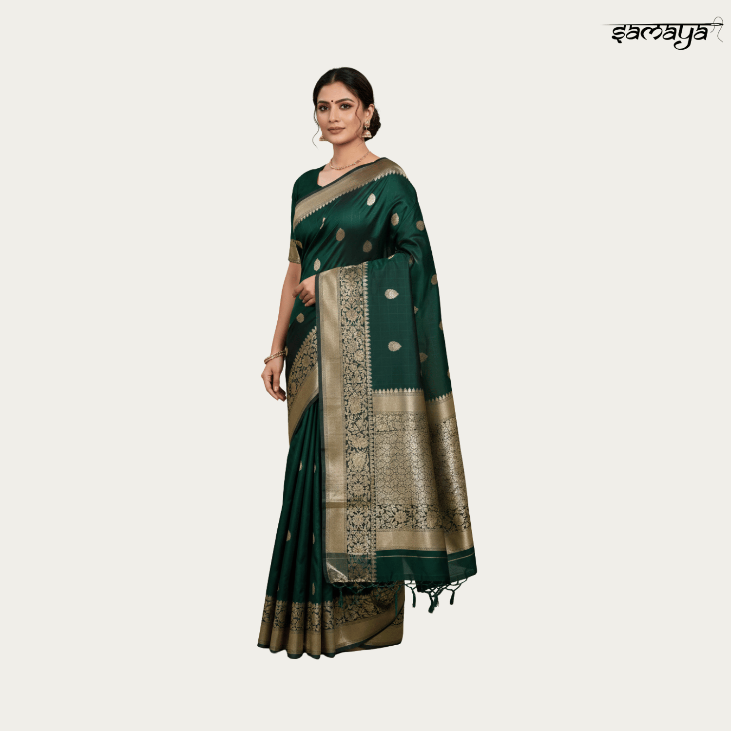 Bottle Green Banarasi Silk Saree Gold Zari Festive Wedding