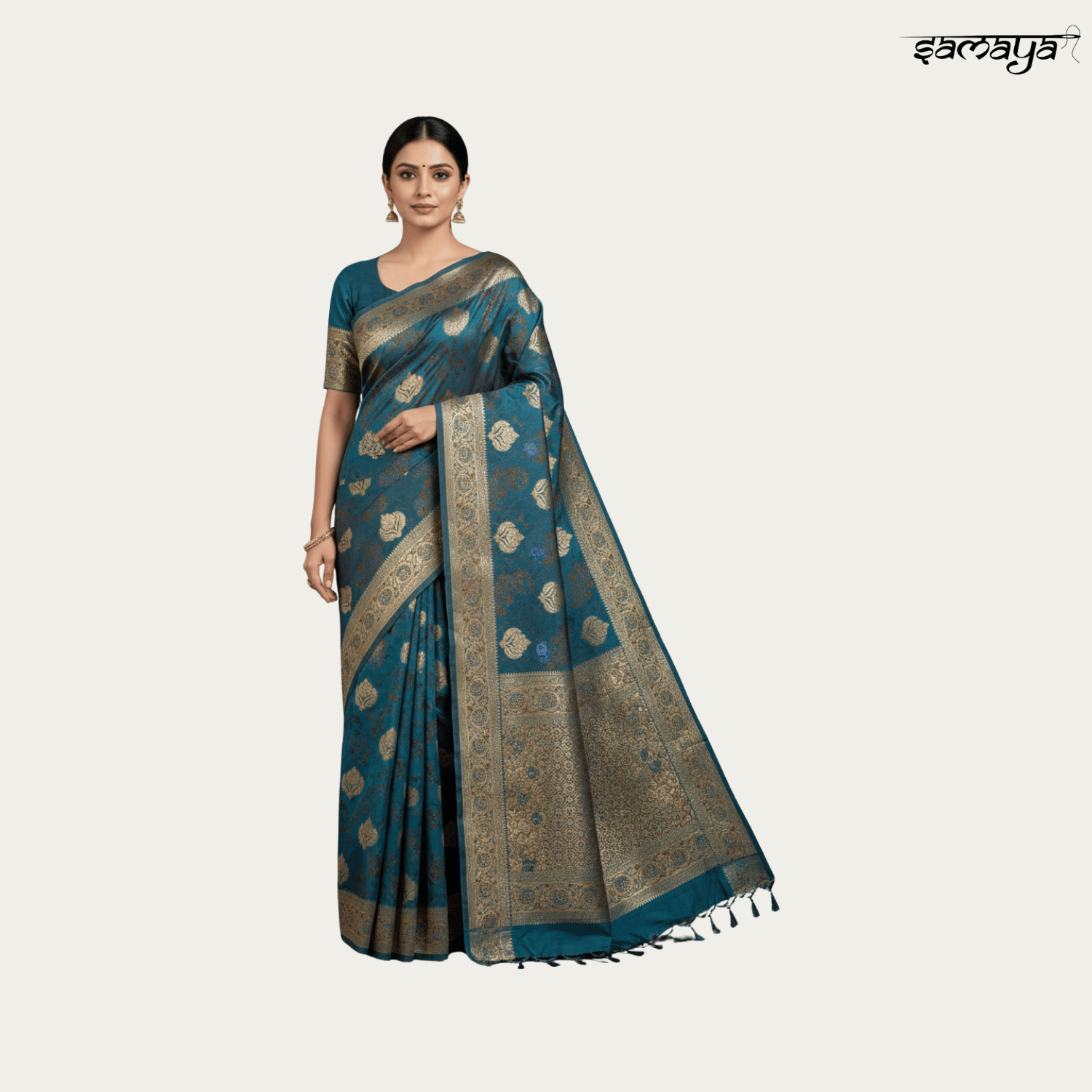 Teal Blue Banarasi Silk Saree Gold Zari Weaving Festive Wedding