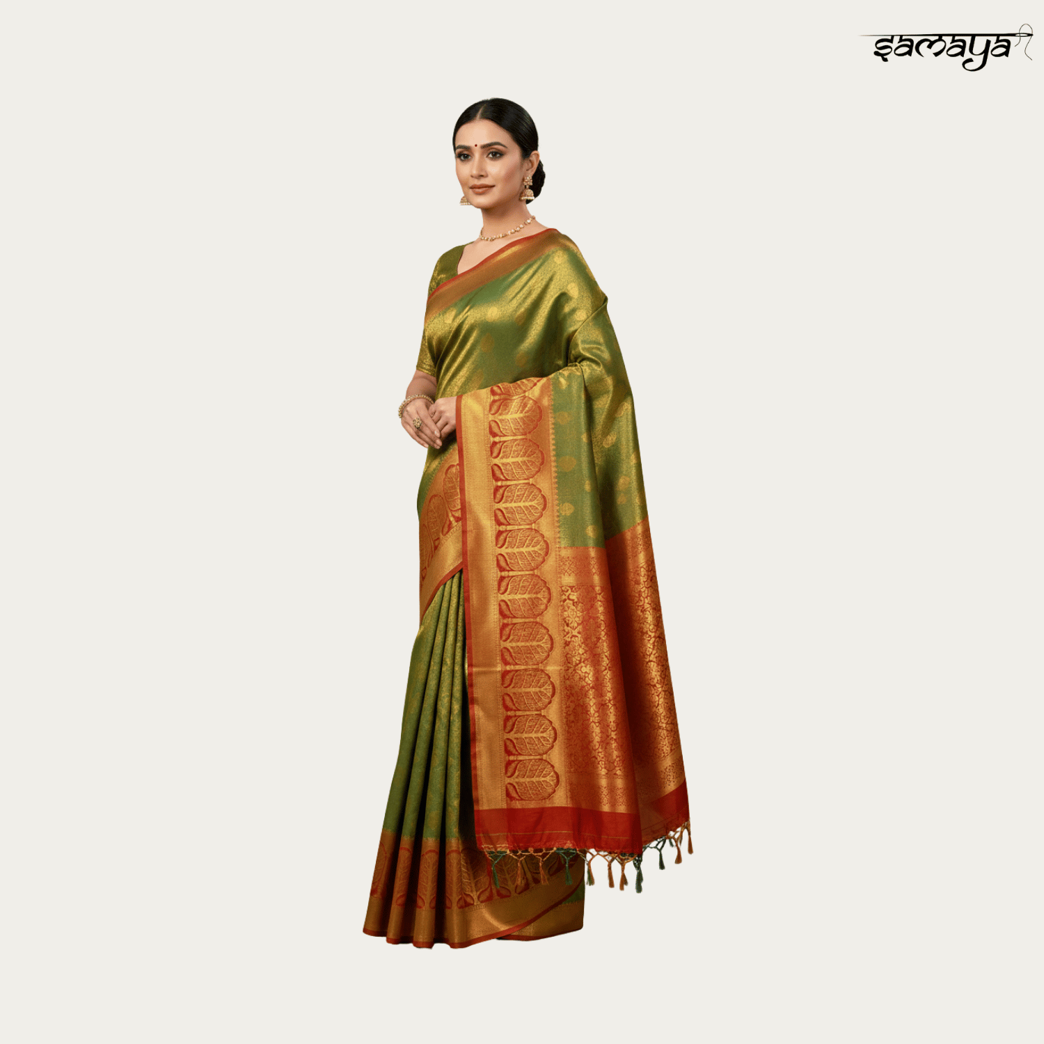 Olive Green Soft Banarasi Silk Saree with Zari for Festivals