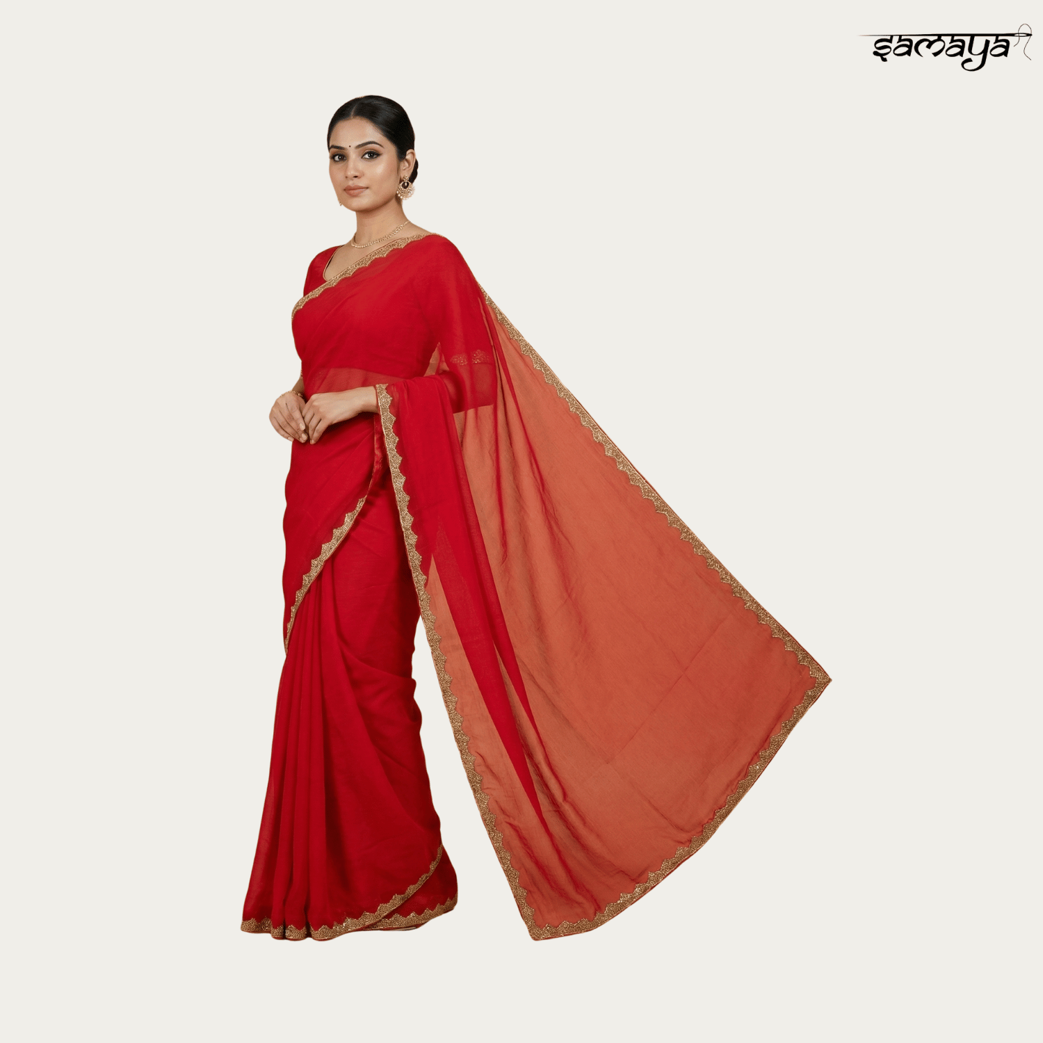 Plain Red Georgette Saree with Gold Lace Border for Party