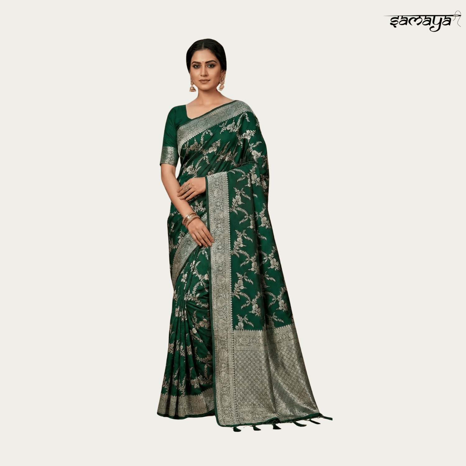 Emerald Green Banarasi Silk Saree with Zari Work for Wedding