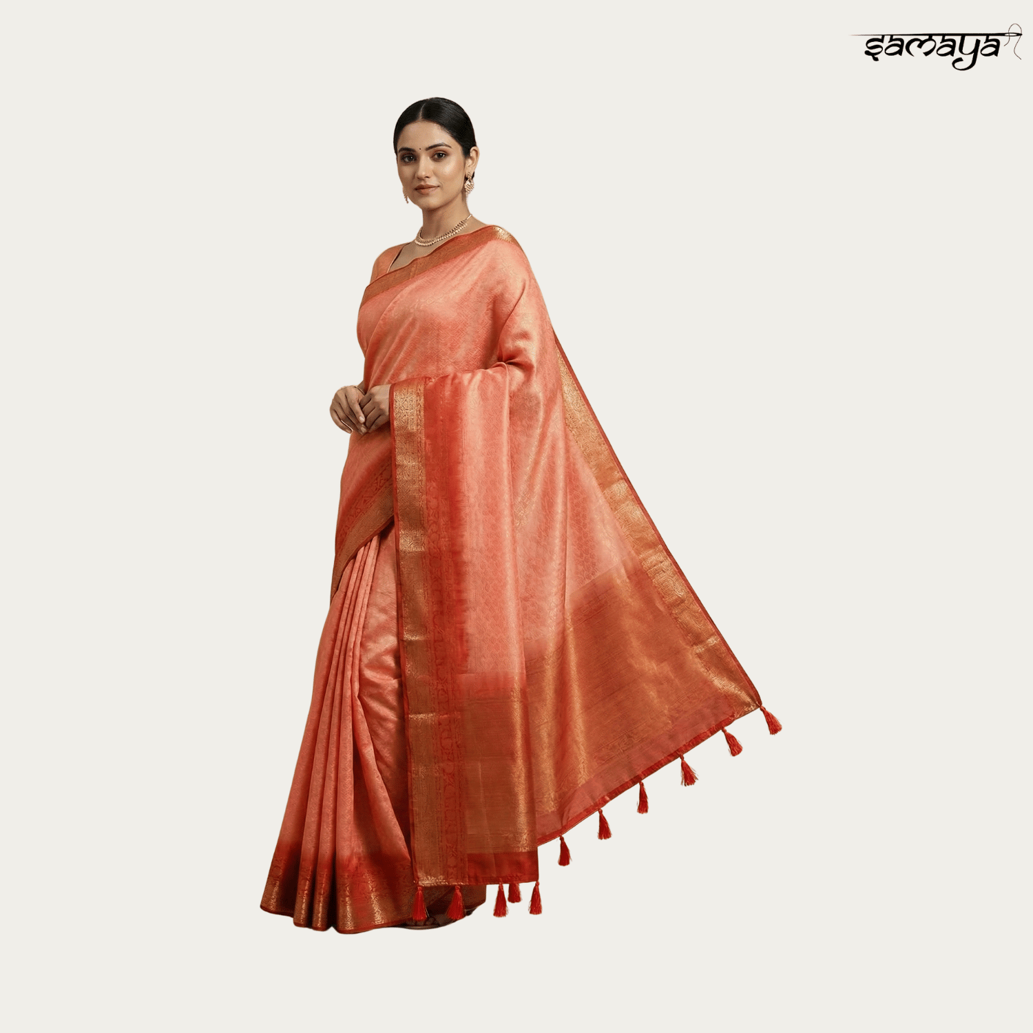 Coral Pink Soft Silk Saree with Self Weaving for Festive